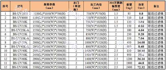 UV光解廢氣凈化設(shè)備規(guī)格參數(shù)表